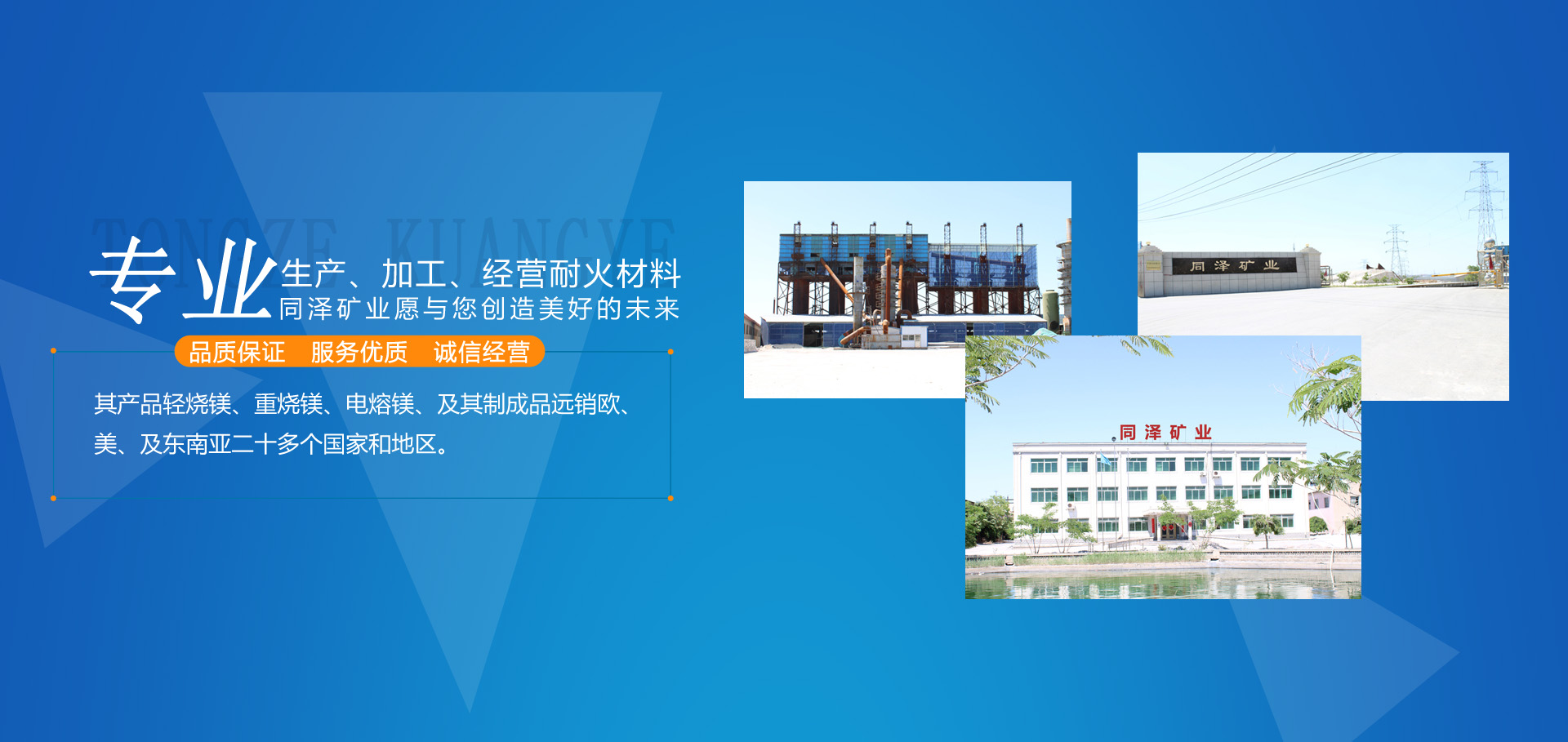 大石橋市同澤礦業(yè)有限公司,是以生產、加工、經營各種耐火材料為主的綜合性經濟實體。其產品輕燒鎂、重燒鎂、電熔鎂、及其制成品遠銷歐、美、及東南亞二十多個國家和地區。